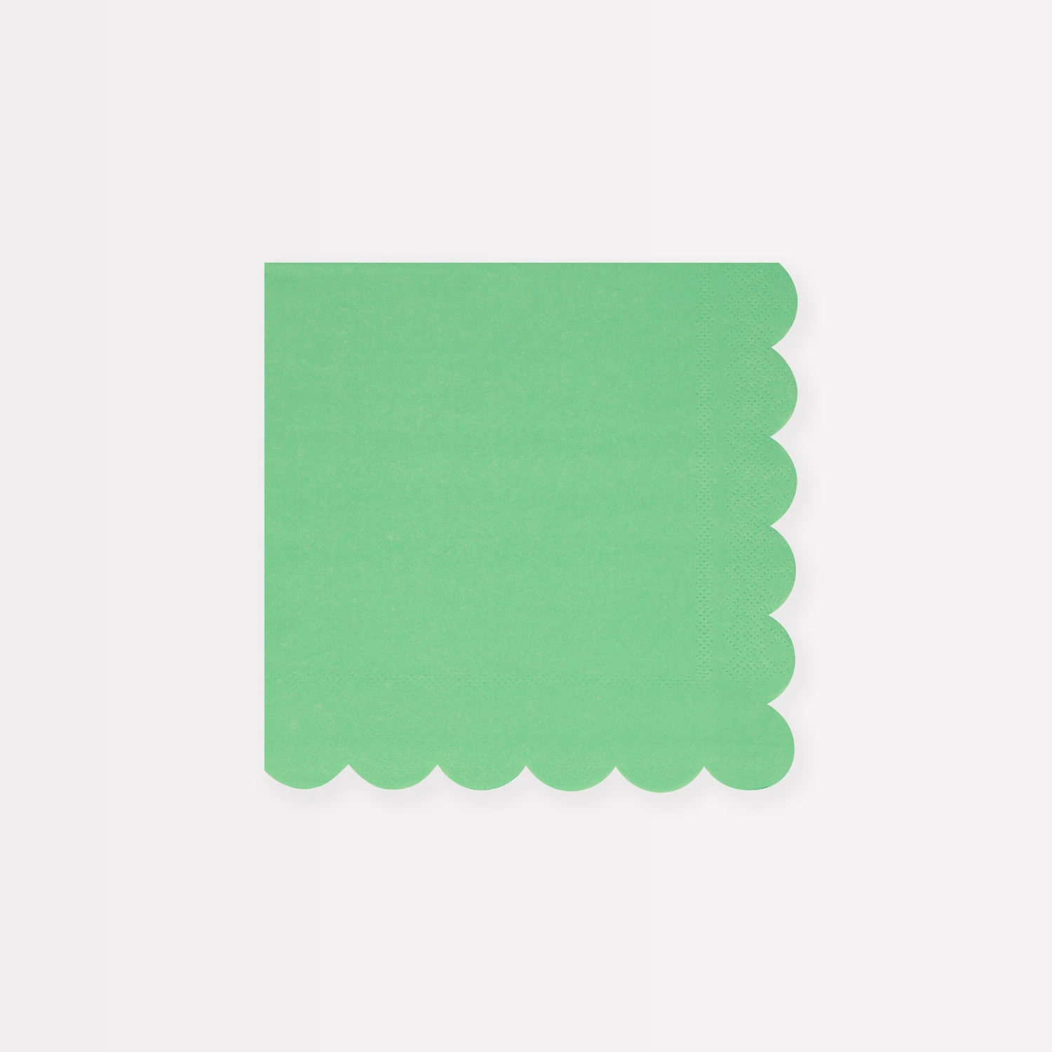 The color emerald green is associated with nature, new beginnings, health and wealth. So these gorgeous napkins, with their stylish scalloped edge, are perfect for a garden party, baby shower, a new home get-together, or any birthday or family meal to celebrate being happy and healthy. The napkins are part of our stylish new take on mix and match tableware.