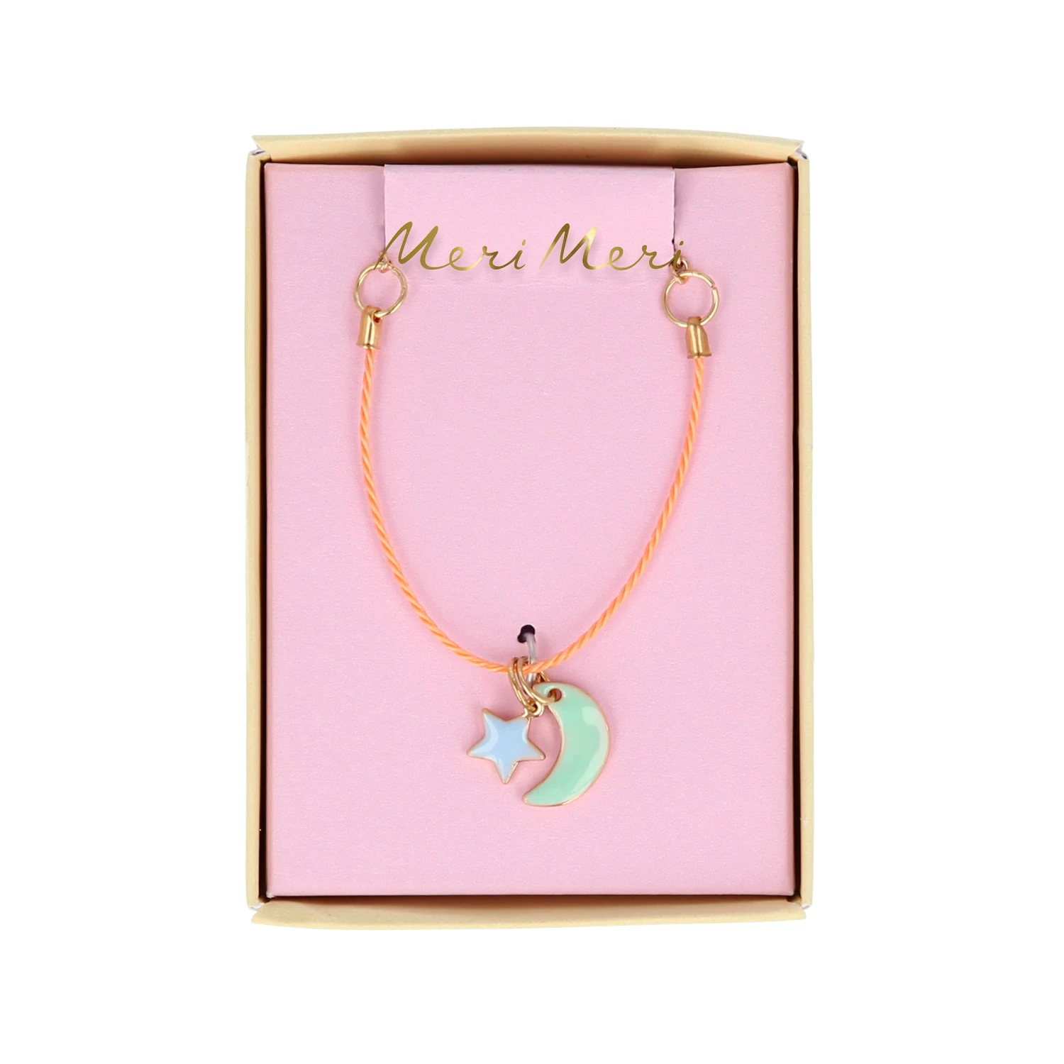 This beautiful necklace is perfect to show someone you love them to the moon and back! It features stunning enamel moon and star charms.