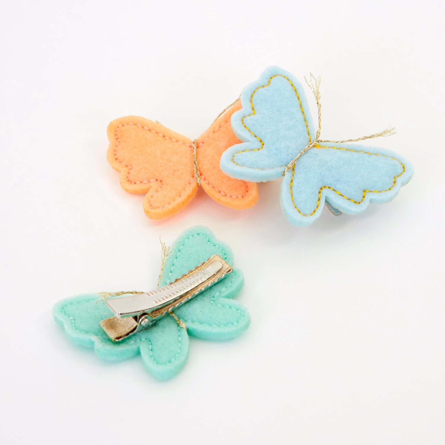 Butterflies are so beautiful, and they make a fabulous stylish hair accessory. This set of 4 felt hair clips are perfect to wear for parties, or to create a good hair day everyday!