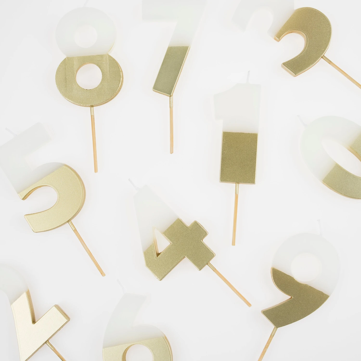 Light up a birthday cake or anniversary cake with our fabulous number candles. They are chunky and gold ink dipped for real wow-factor!