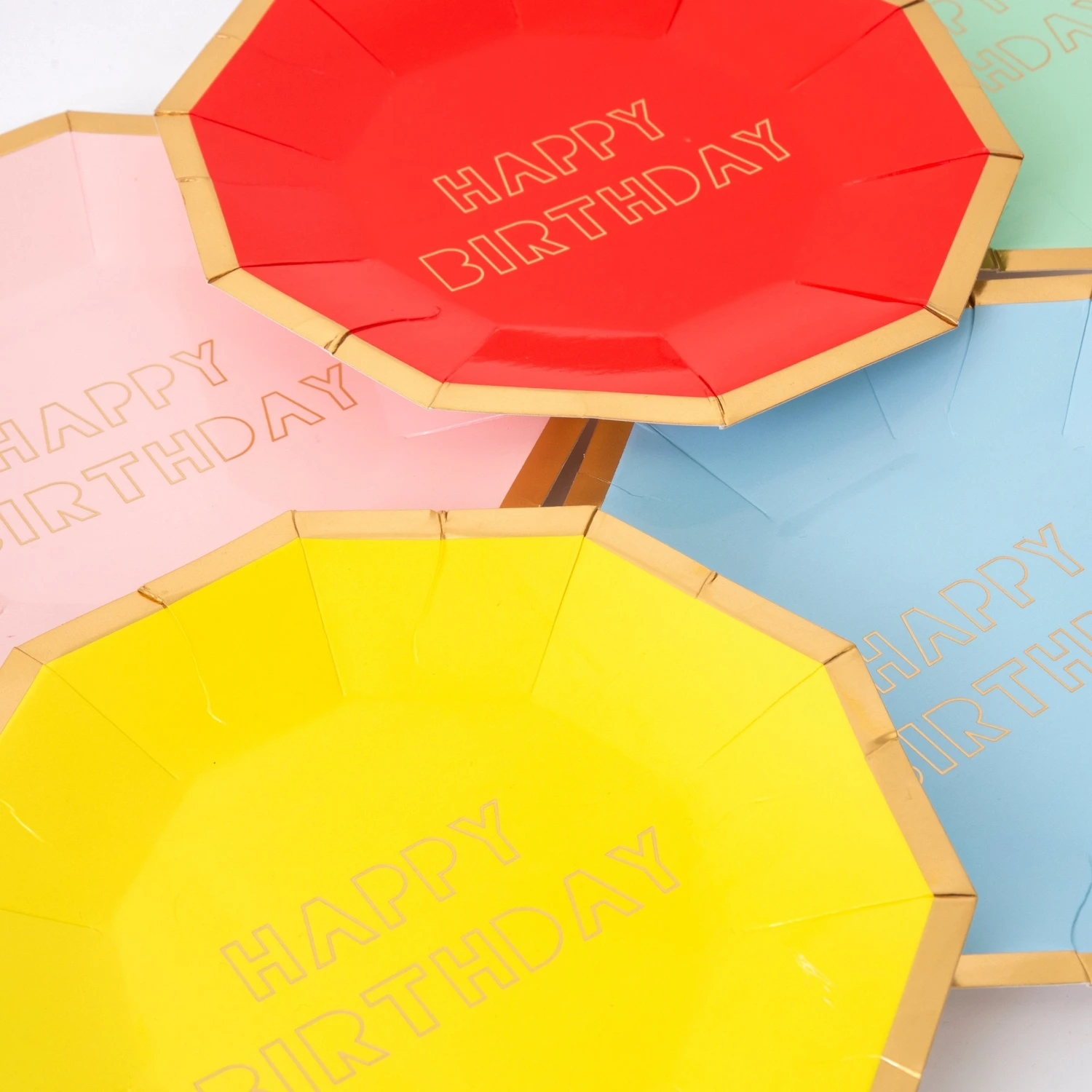 What better way to celebrate another excellent year than with a big splash of bold, beautiful color? These paper plates are the perfect decoration for any party table, and are part of our Happy Birthday range! With eight plates in eight bright colors, each with a shiny gold foil border and Happy Birthday message, they are sure to add a little brilliance to your celebration!
