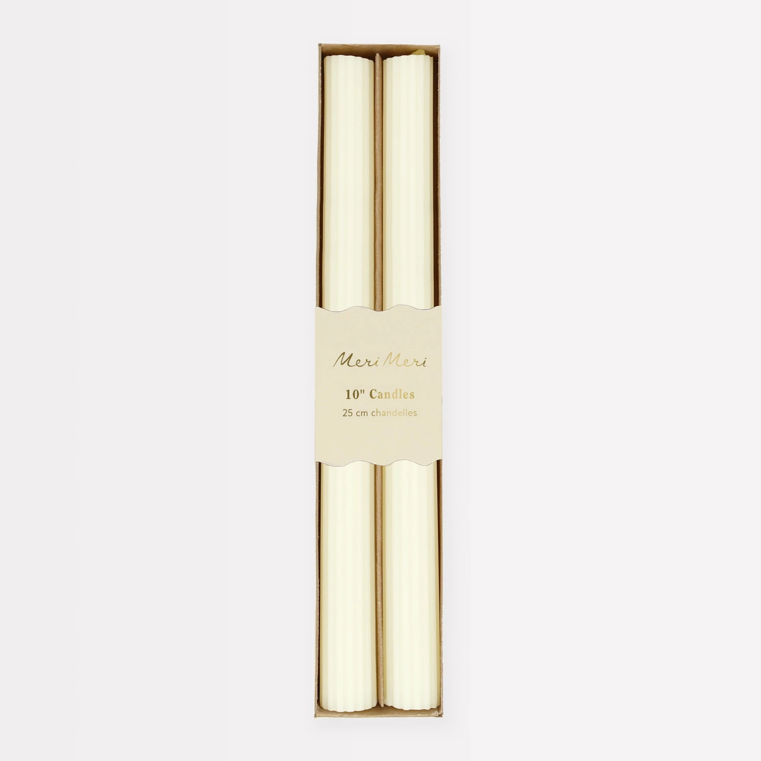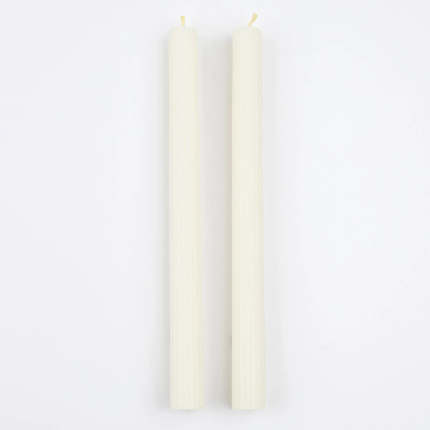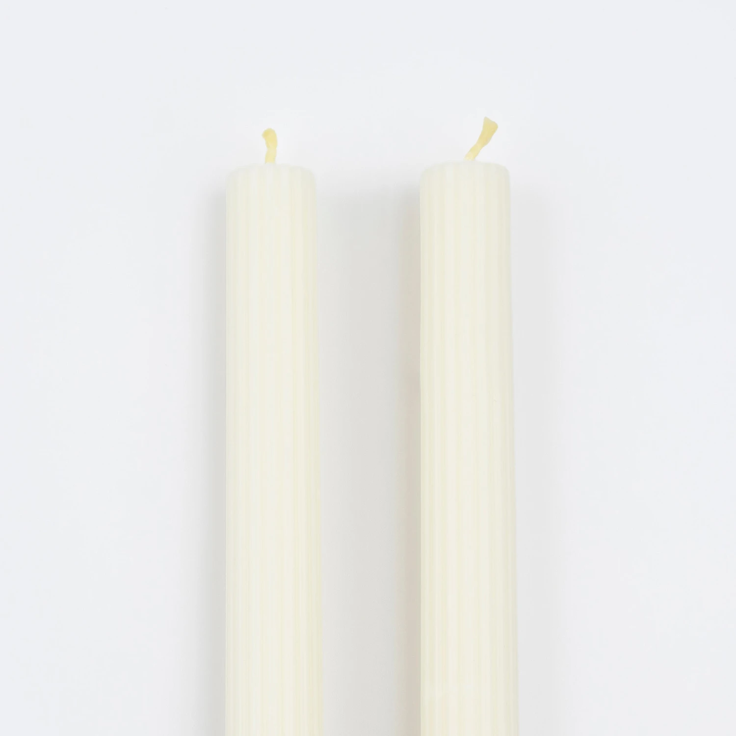 These striking ivory candles have matching wicks with ridged details for an oh-so-stylish look. Use them to decorate your party table or mantel or give as a fabulous hostess gift.