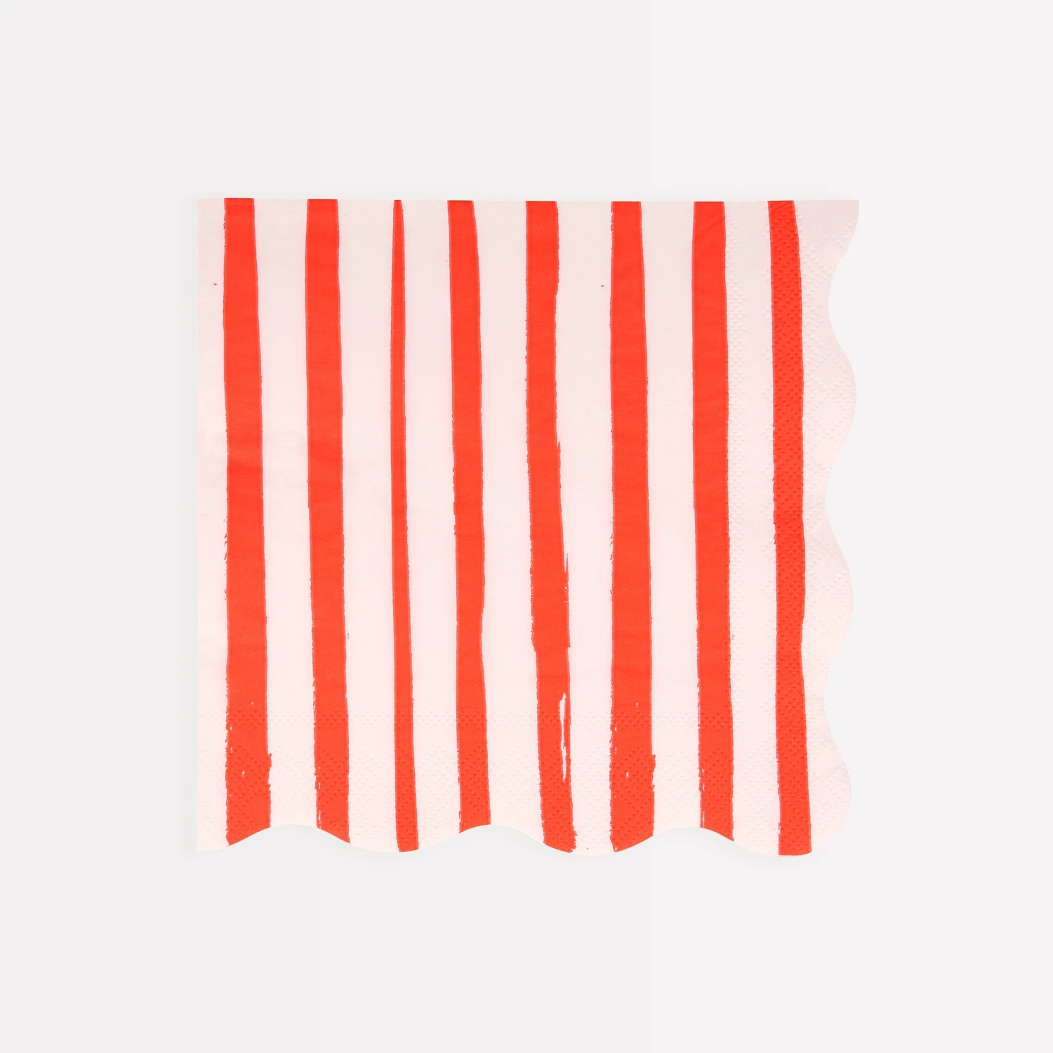 Red and white stripes are bright and cheerful – the perfect color theme for any special celebration. These napkins also have a delightful scalloped border for a stylish effect.