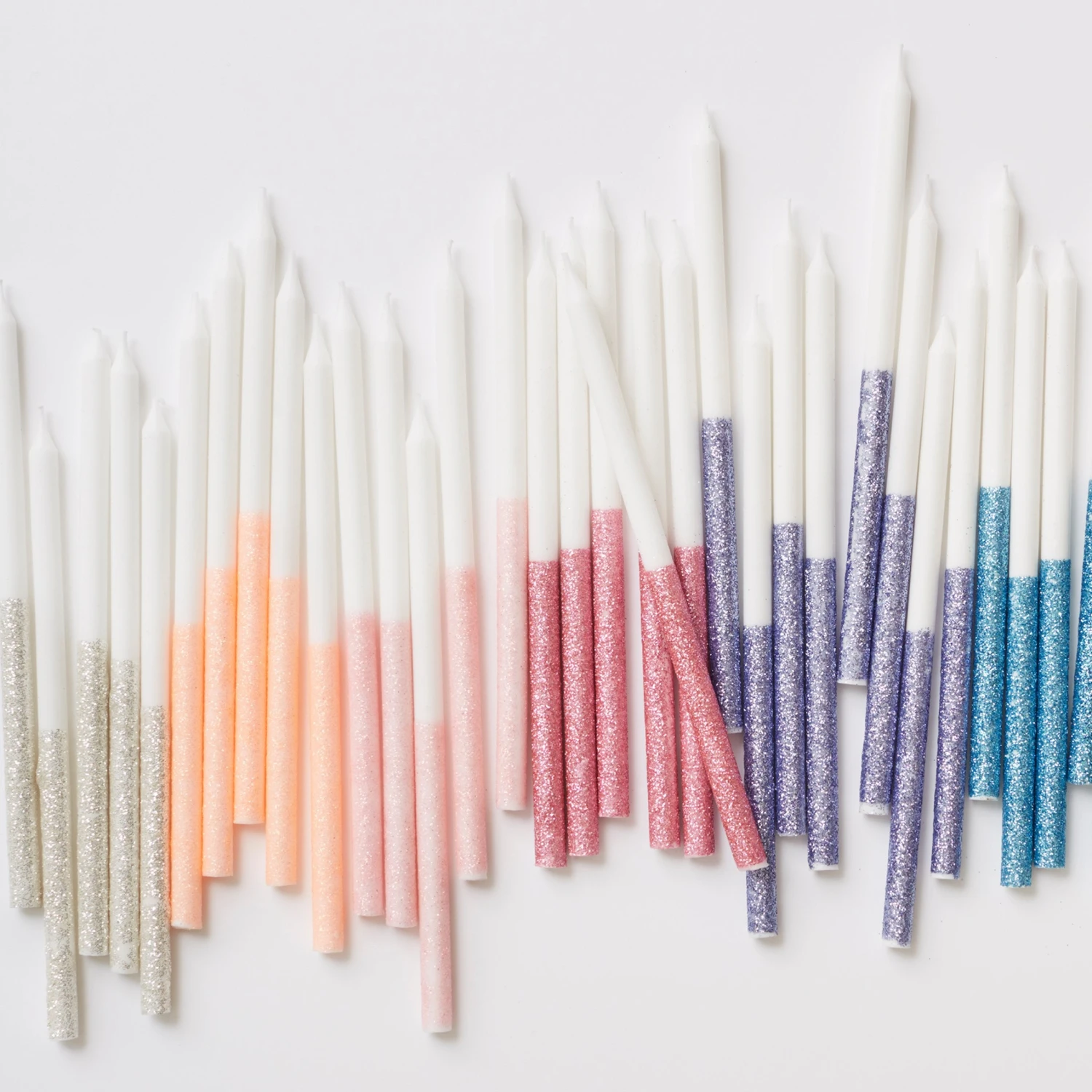 These gorgeous two-tone glittery candles will look really impressive on a special celebration cake.