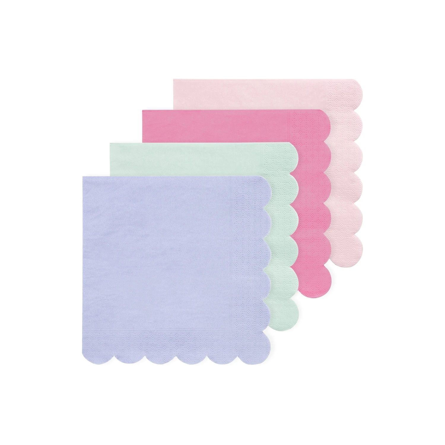 These beautiful paper napkins are made to match our compostable bamboo plates. They come in a range of pastel colors and are finished with stylish, scallop borders.