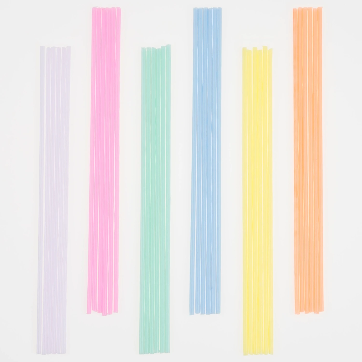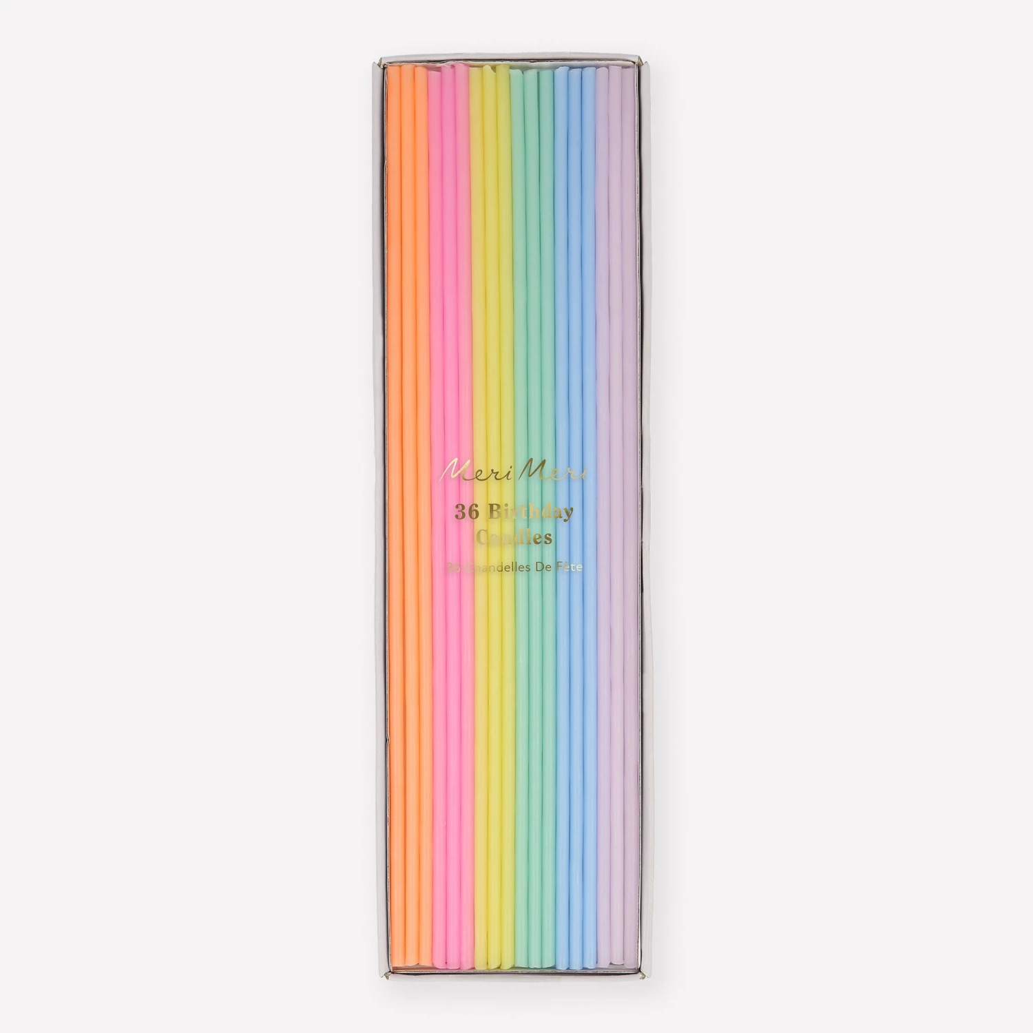 These long and skinny candles will look sensational on any celebration cake. Use just a few, or pop on the whole pack to really light up the party. The pastel shades are perfect for baby showers and birthday parties.